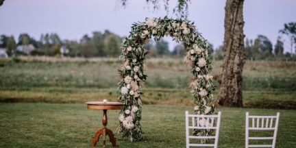 - Arche de cérémonie ornée d’eucalyptus et de gypsophile.
